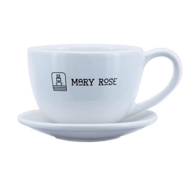 - Mary Rose logo teacup complete with plate – perfect for coffee and tea lovers! Made of ceramic, it impresses with its stylish design, adding charm to every moment of relaxation.